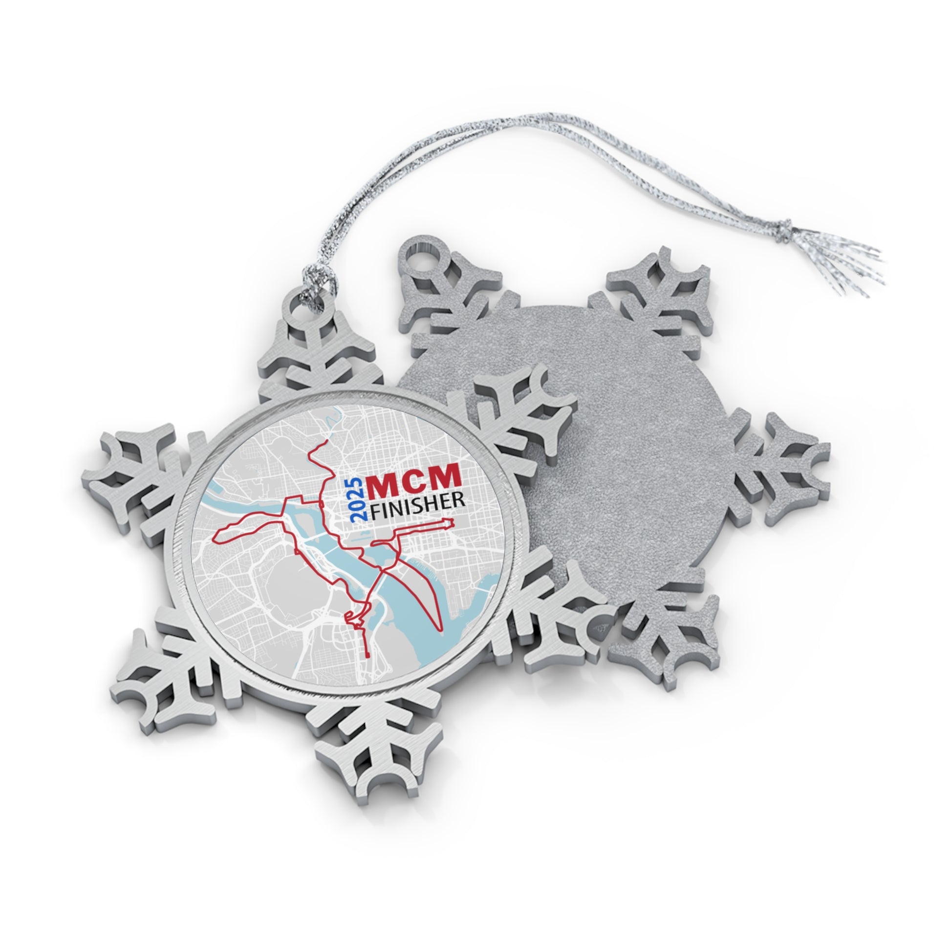 2025 MCM 26.2 Pewter Snowflake Ornament Marathon Map