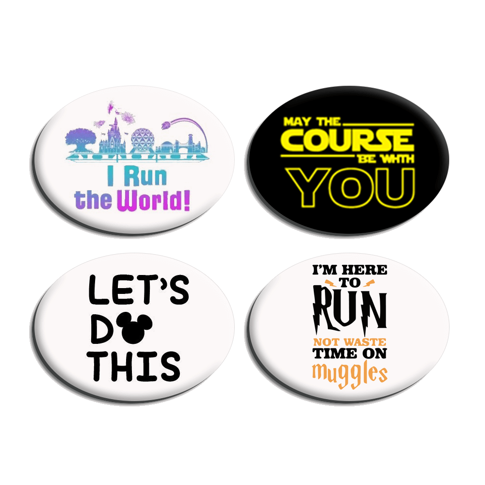Add a bright and colorful pop to your race day attire with Disney. Marvel, Star Wars and Harry Potter inspired bibSNAPS. Our cartoon-ish bibSNAPS are perfect for those who love to let their spirit shine through on race day. Comes as a set of 4.