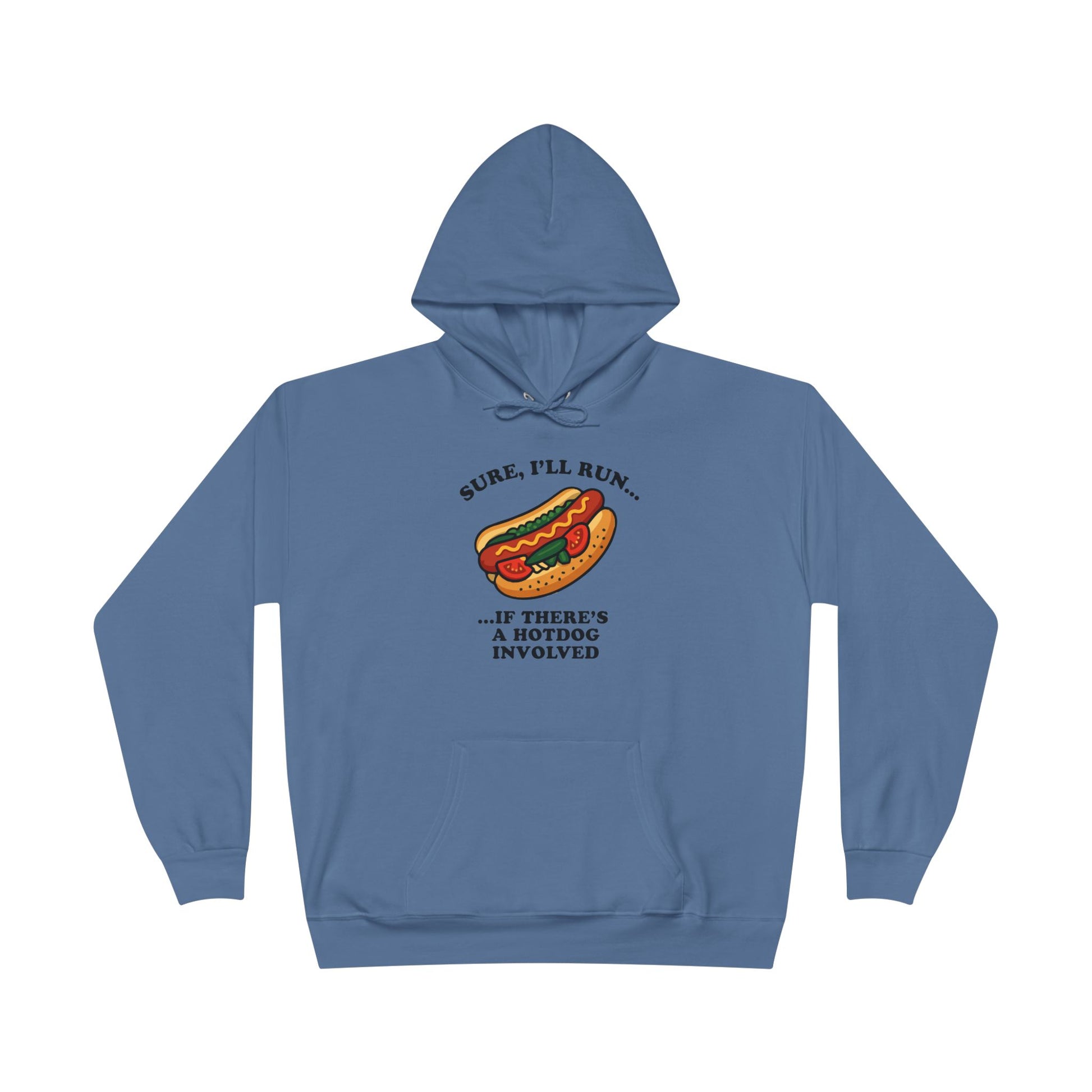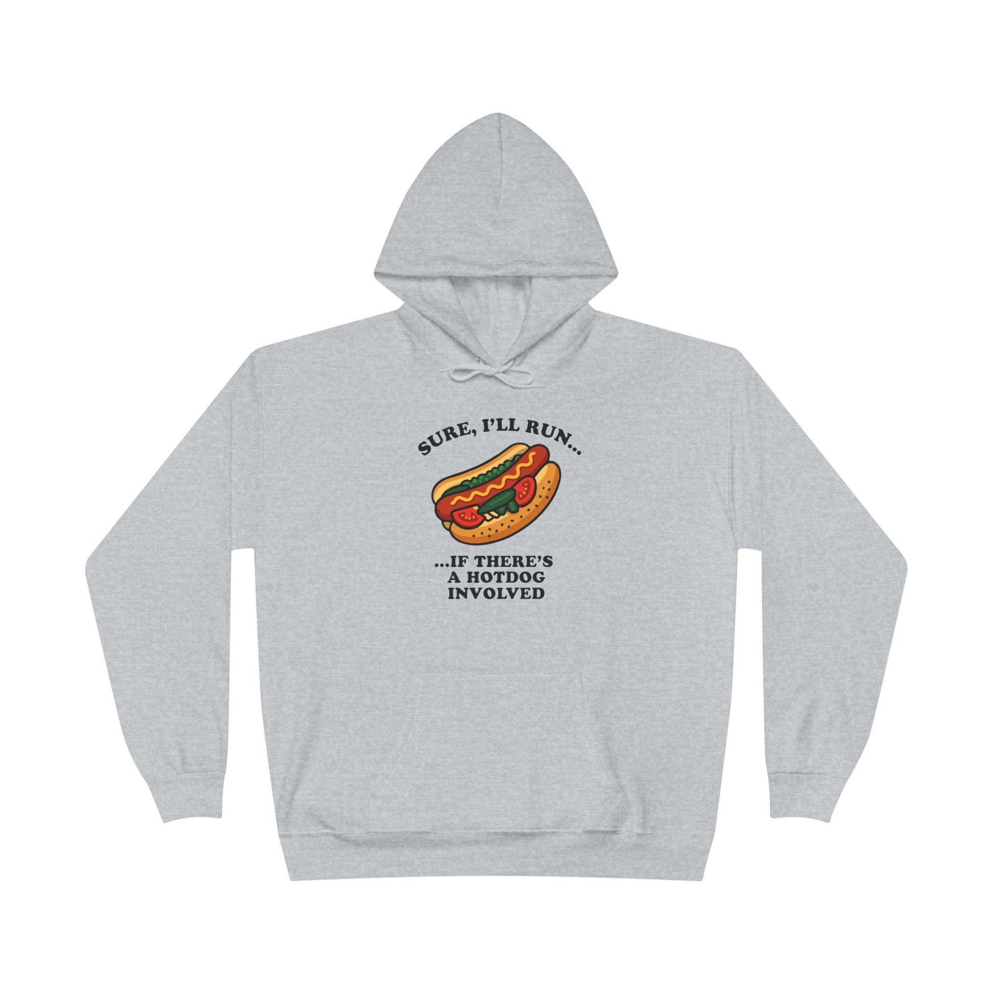 Humorous Hot Dog Hoodie, Unisex EcoSmart Pullover Sweatshirt, Perfect for Food Lovers, Running Events